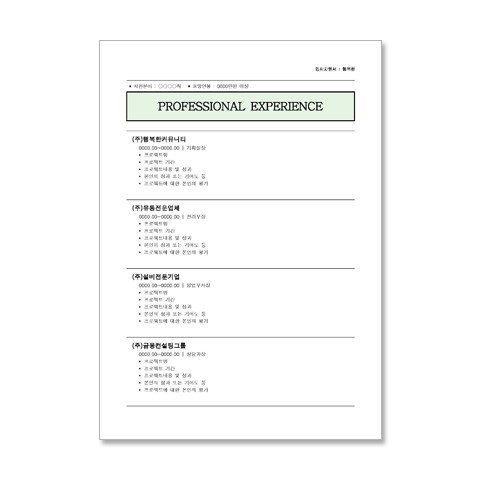 경력직 이력서, 자기소개서의 일반적 형태입니다.